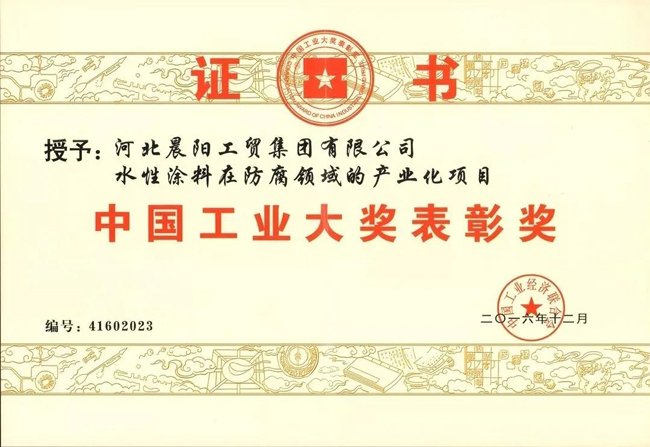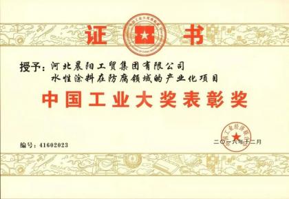 河北晨陽工貿集團榮獲“中國工業大獎表彰獎”